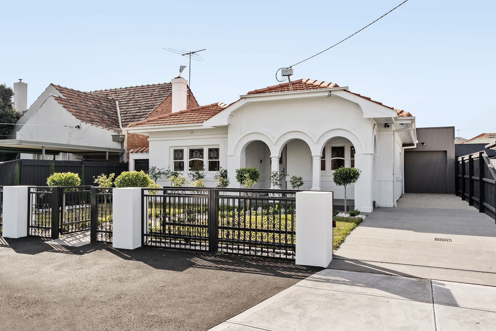Presenting timeless character with style influences spanning Spanish Mission and Californian Bungalow, this revitalised showpiece offers single-level luxury in an exclusive Merri Creek enclave. Enjoying a commanding setback, a compelling façade reveals a wide and welcoming entry hall, with a function-focused interior showcasing exquisite updates and seamless movement from front to back. Featuring in-vogue black accents, a skylit central bathroom with soaker tub joins a pair of superb ensuites in serving four substantial bedrooms. An unrivalled indoor/outdoor entertainer's domain, sun-drenched living and dining zones flow into a north-facing backyard, while a supreme marble kitchen boasts class-leading Gaggenau appliances, a walk-in pantry, plumbed refrigerator cavity, and stylish linear pendant to a broad waterfall island. Offering a sumptuous blend of old and new, soaring ceilings and leadlight windows complement bright tones and modern amenities, with further highlights including zoned ducted heating/cooling, engineered timber floors, walk-in and built-in robes, a full-size laundry, alarm, garage, and secure driveway spaces leading to remote garage. Steps from the thriving East Brunswick Village, scattered sporting fields, peaceful parklands, and idyllic creek trails, it's moments from acclaimed Northcote High and Merri Creek Primary (zoned to both), city trains and trams, and vibrant shopping, dining, and nightlife of Lygon Street, Nicholson Street, and St Georges Road.